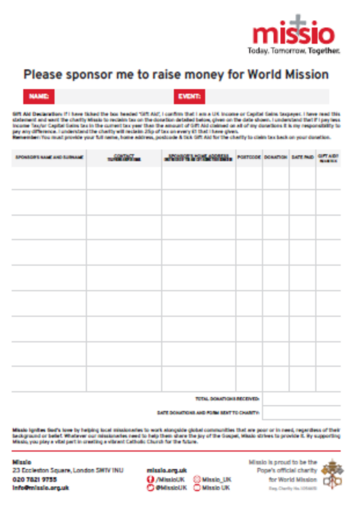Don’t forget to share photos of your fundraising events with @MissioUK on Twitter, @missio_uk on Instagram and @MissioUK on Facebook!